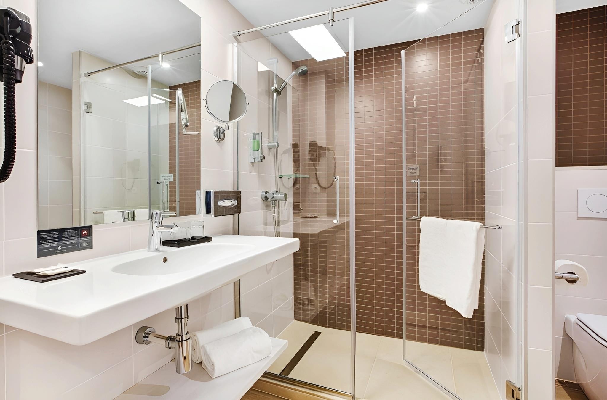 - fürdőszoba (fürdőkád vagy zuhanyozó, hajszárító, WC)