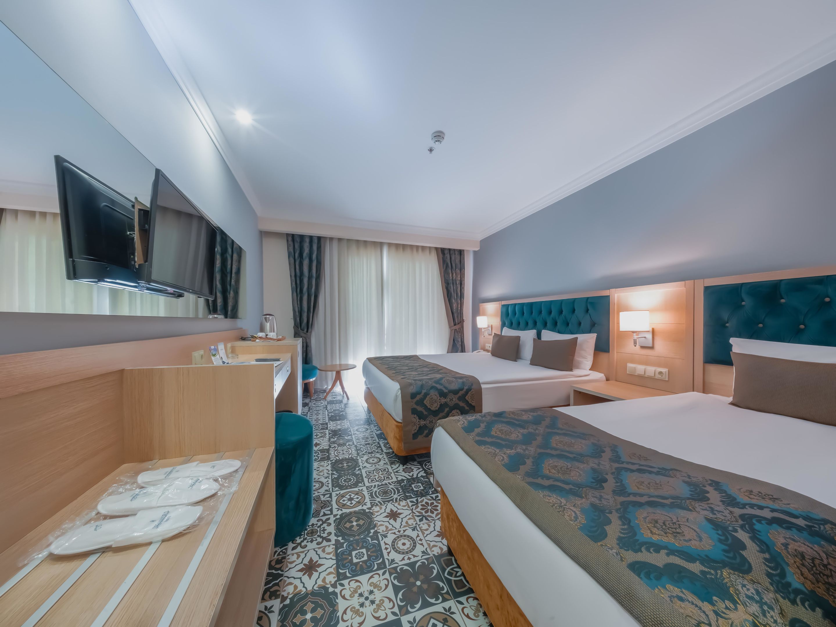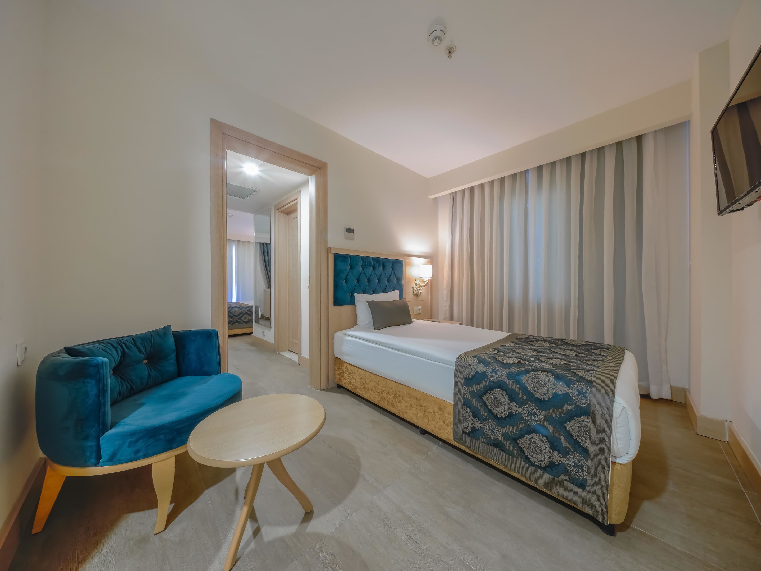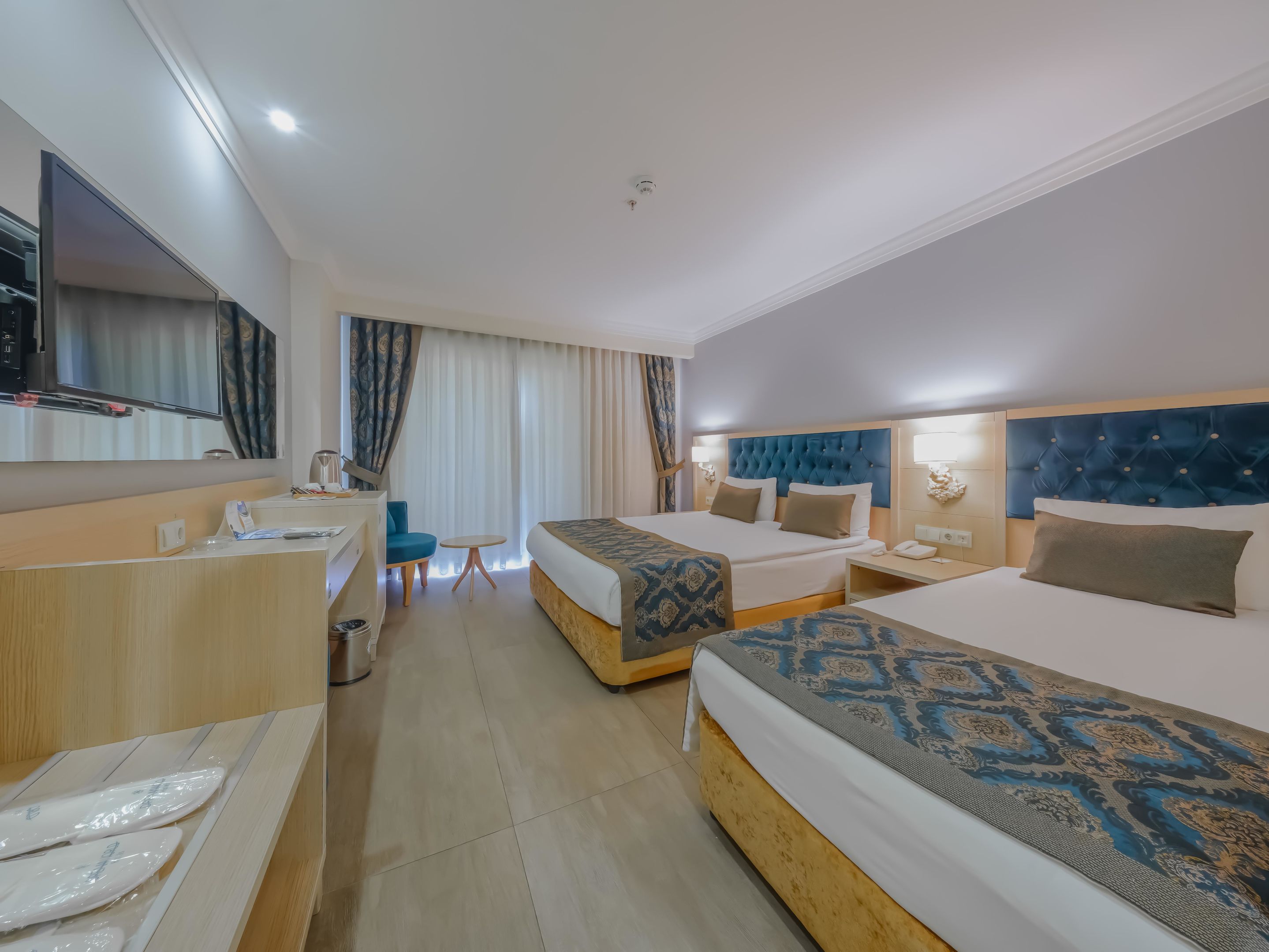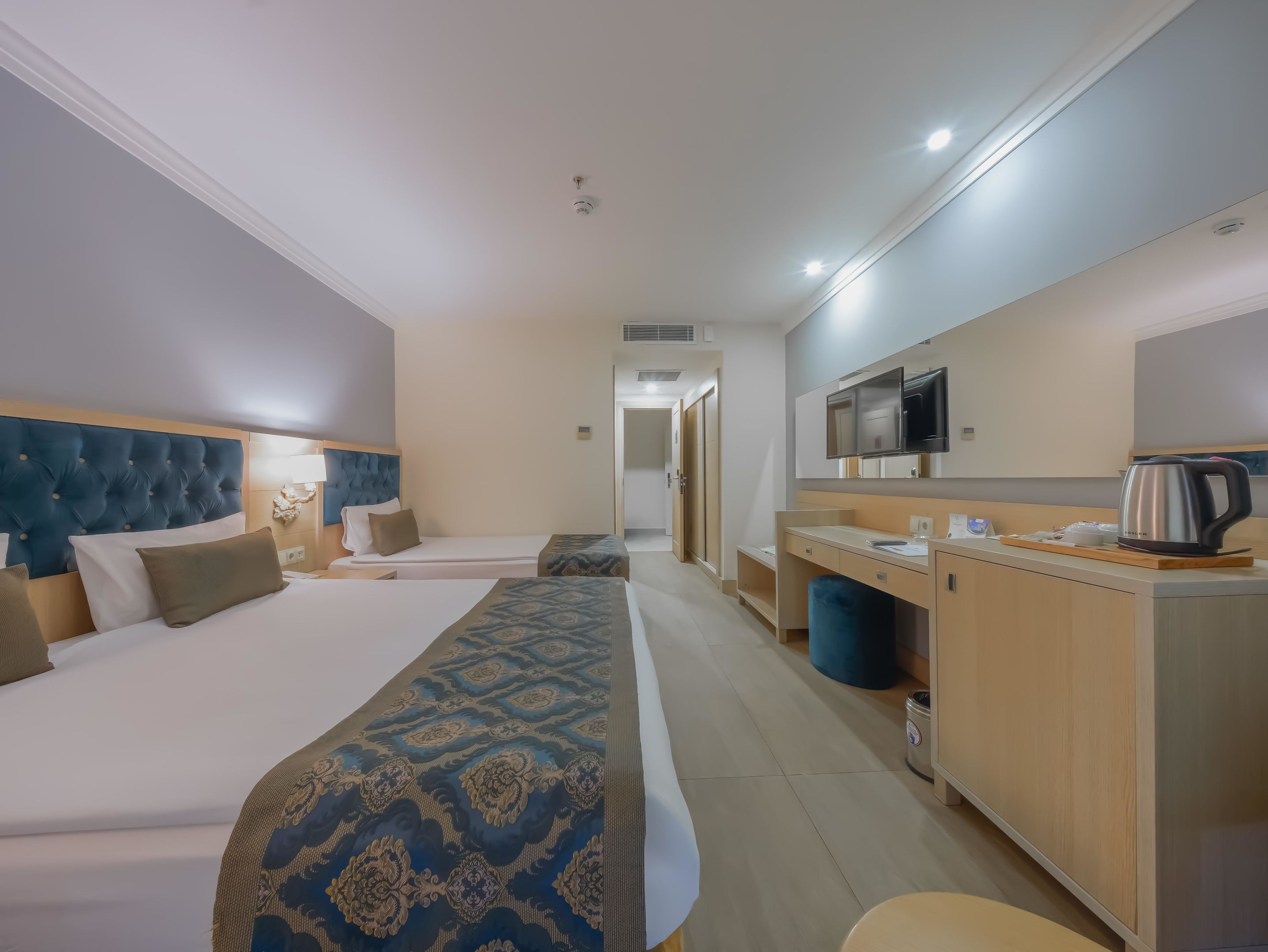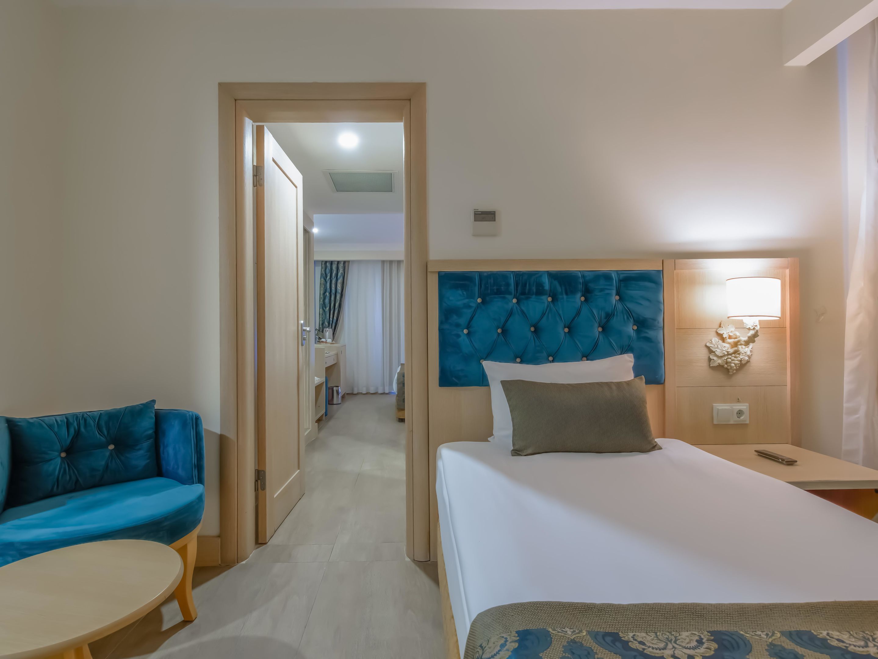 A szobákat légkondicionáló berendezéssel, központi fűtéssel és fürdőszobával szerelték fel. A vendégek a teraszon, illetve az erkélyen is kényelembe helyezhetik magukat. A szobák egy franciággyal és egy kihúzható kanapéval rendelkeznek. Különálló hálószobák foglalására is lehetőség van. A gyerekeknek kiságyat biztosítanak. Egy minibár, valamint díj fizetése esetén egy széf is rendelkezésre áll. A kényelmet szolgálja továbbá egy minihűtő és egy tea-/kávéfőző. A nyaralás kényelmét szolgálja az internet-hozzáférés, a telefon, a TV-készülék és WiFi. A szobákban szobapapucs is található. Mozgáskorlátozottaknak kialakított szobák is foglalhatóak. A fürdőszobában zuhanyzó található. A fürdőszobában található hajszárító, kozmetikai tükör, fürdőköpenyek és telefon a mindennapi kényelmet szolgálják. A kényelemhez hozzájárul, hogy a fürdőszobákban kozmetikai cikkek is található(ak). Családi szobát és nem dohányzó szobát is foglalható.